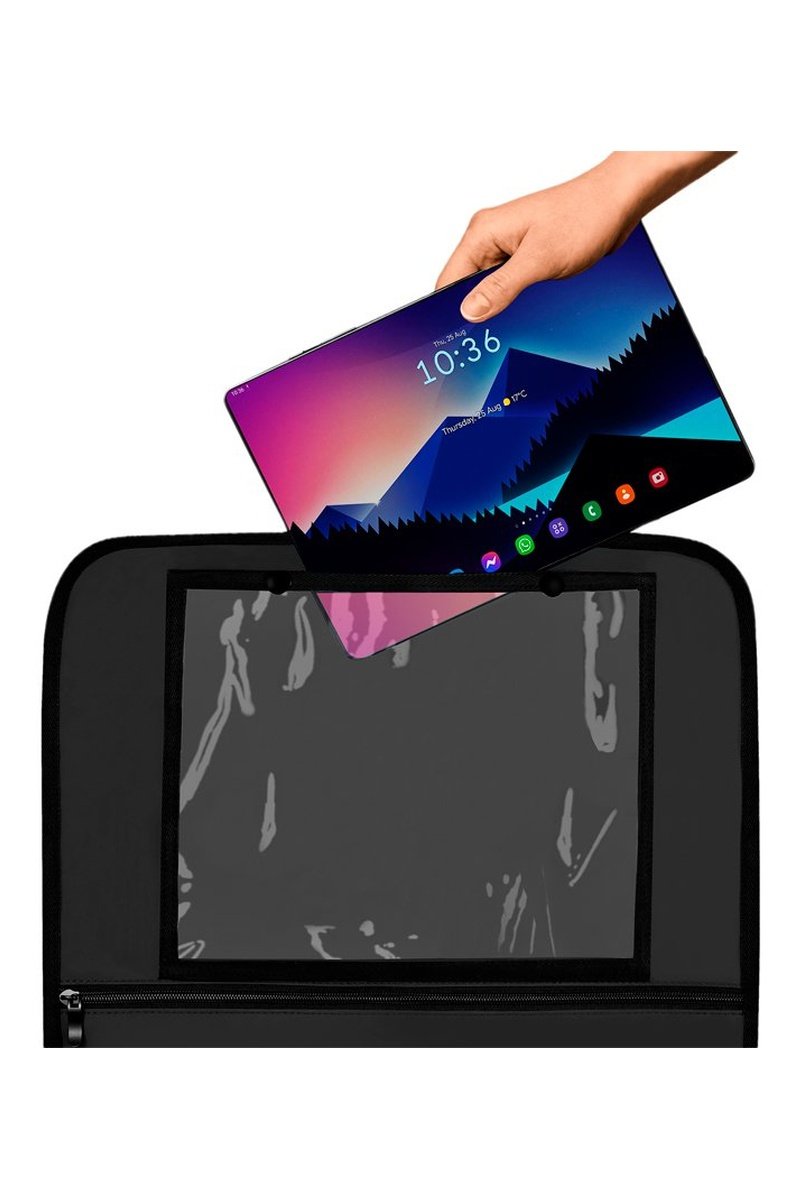 Hangt achter de rugleuning van de voorstoel om de aandacht van je kind tijdens de reis vast te houden, de auto netjes te houden en de stoel tegen vuil te beschermen.