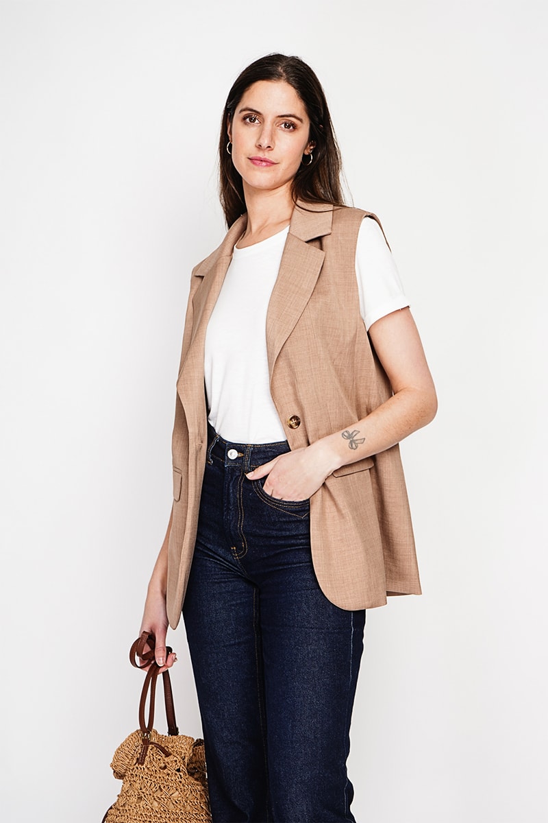 Mouwloos Linnen Jasje - Camel