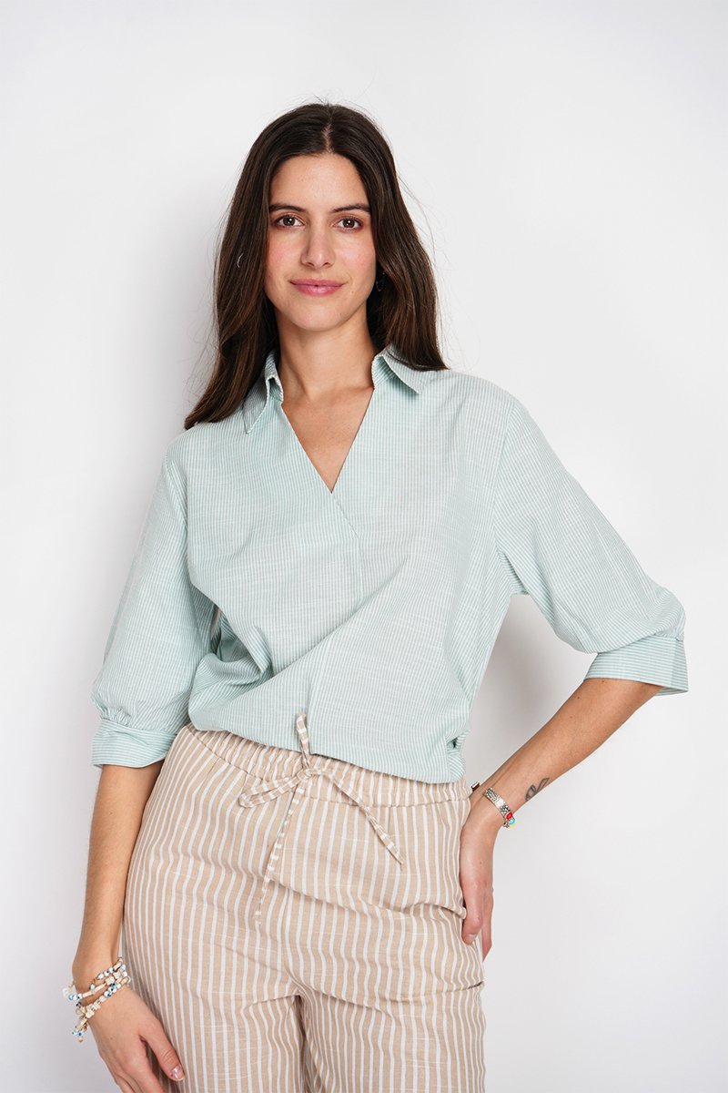 Linnen Top - Wit en groen