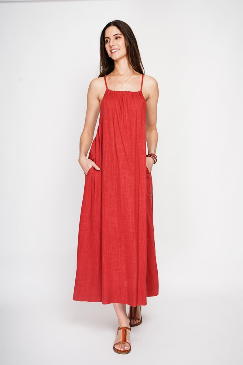 Lange Linnen Jurk - Rood