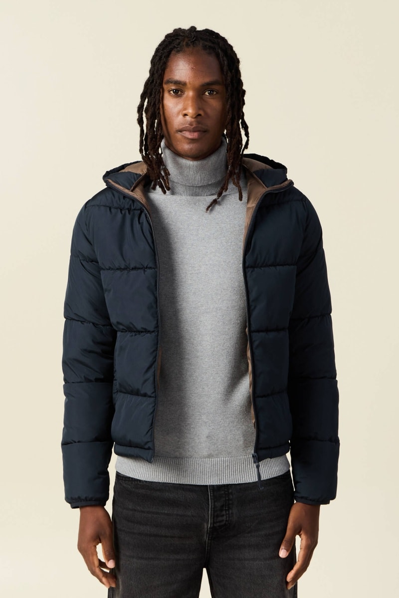 Gewatteerde Jas met Capuchon - Marineblauw