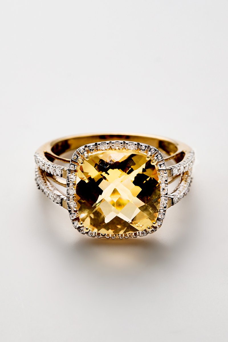 Ring Divine - Geelgoud, Diamanten en Citrien
