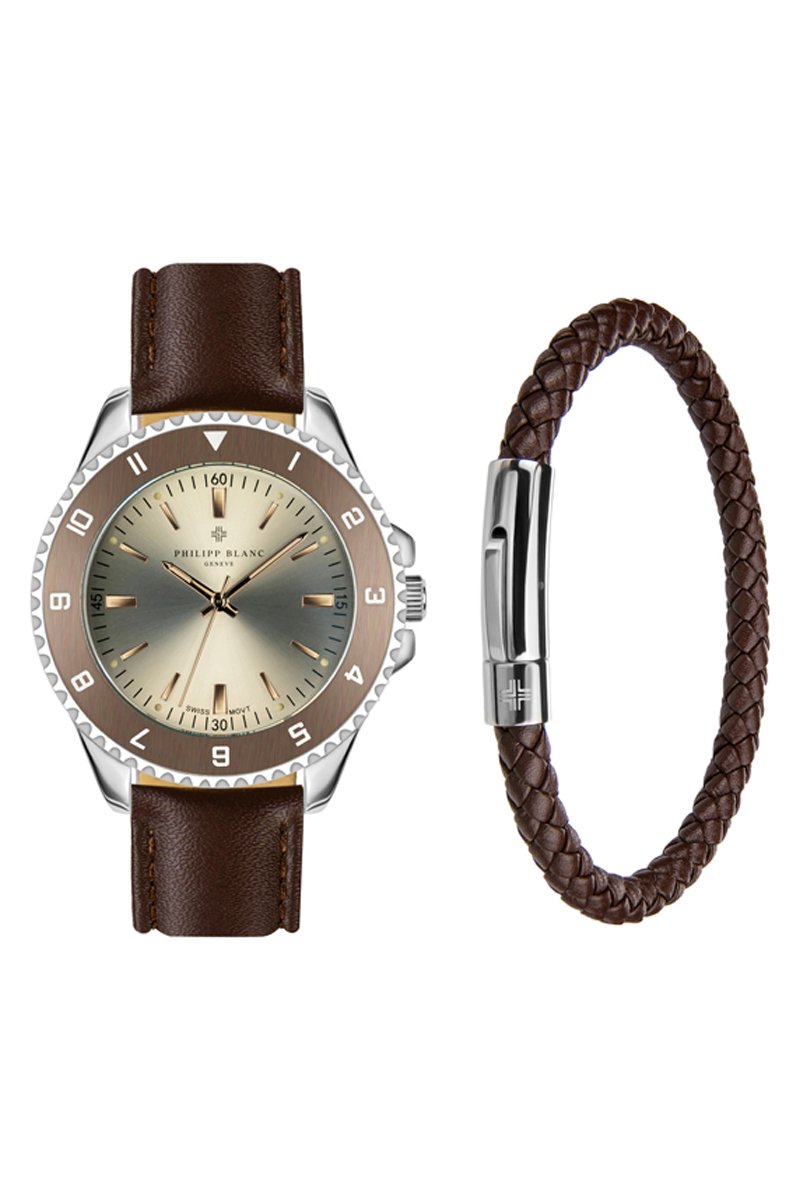 Set Leren Quartz Horloge en Leren Armband
