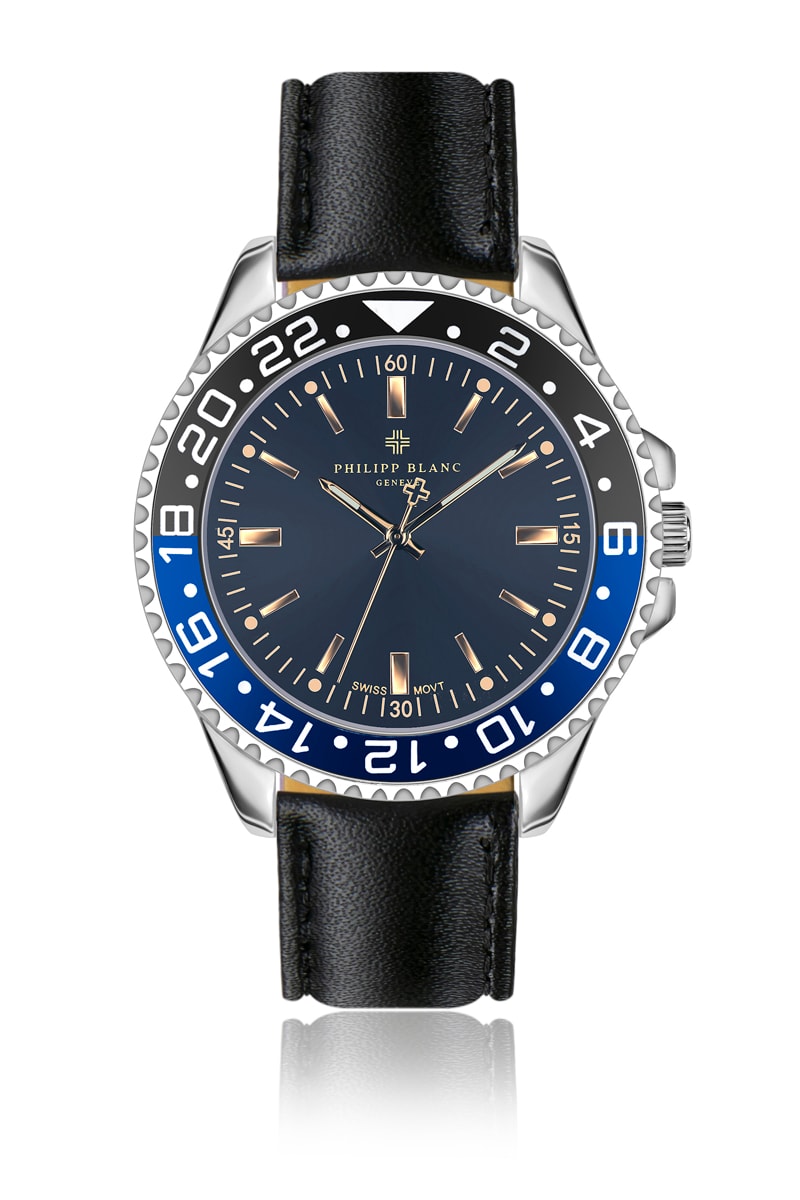 Set Doublé Zilver Ion en Leren Quartz Horloge en Leren Horlogeband Olympe