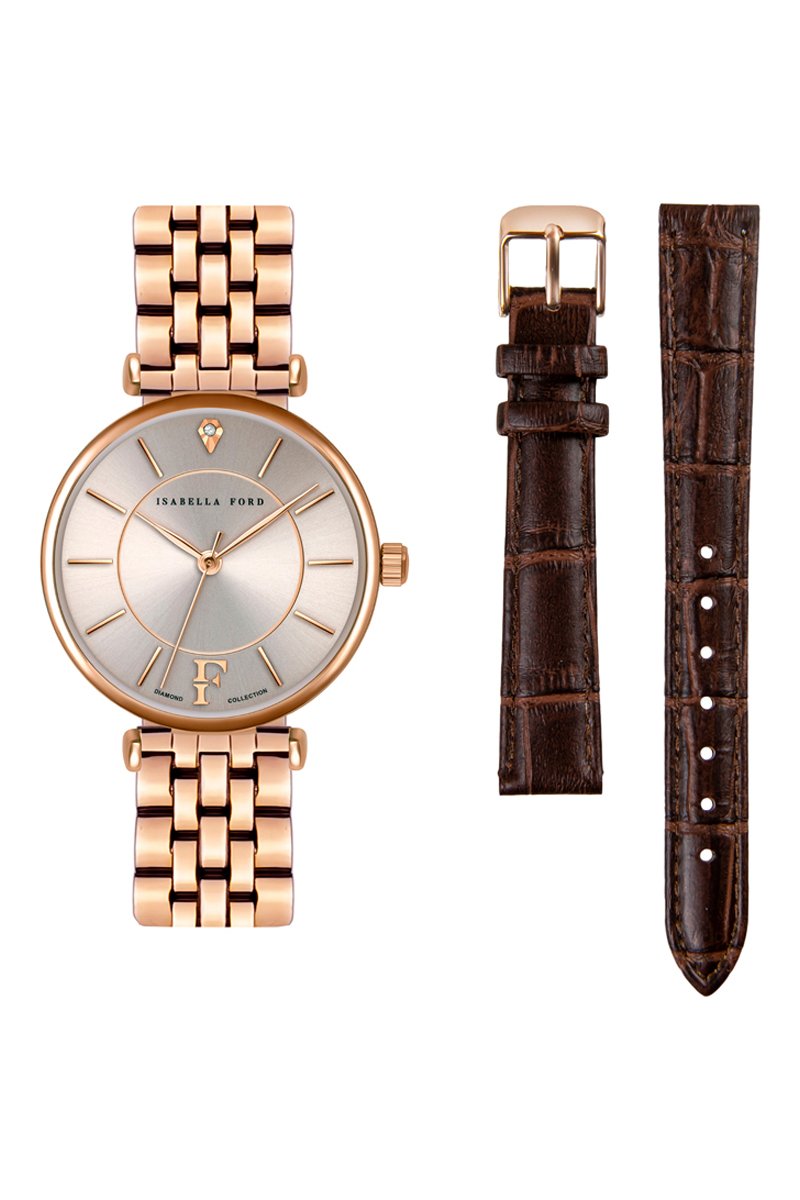 2 verwisselbare horlogebanden: 1 met schakels en 1 van leer met krokodillenlook.