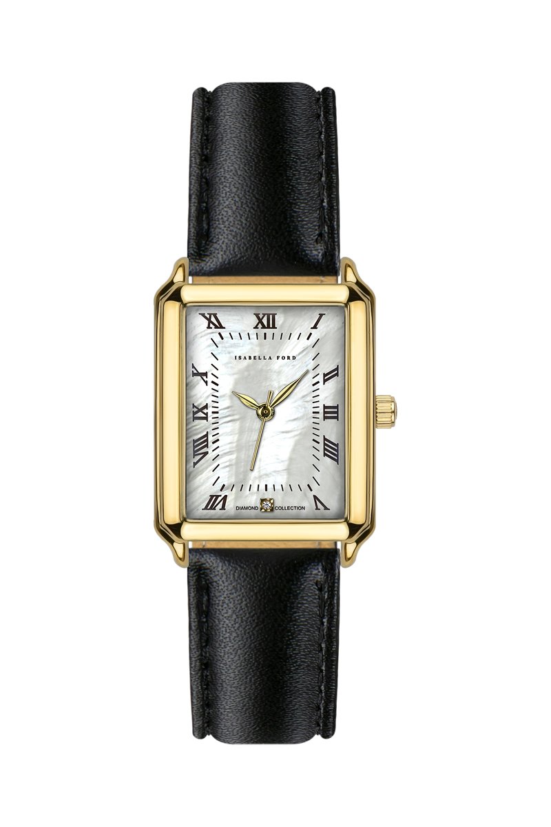 Leren Quartz horloge met parelmoer en diamant Coralie-