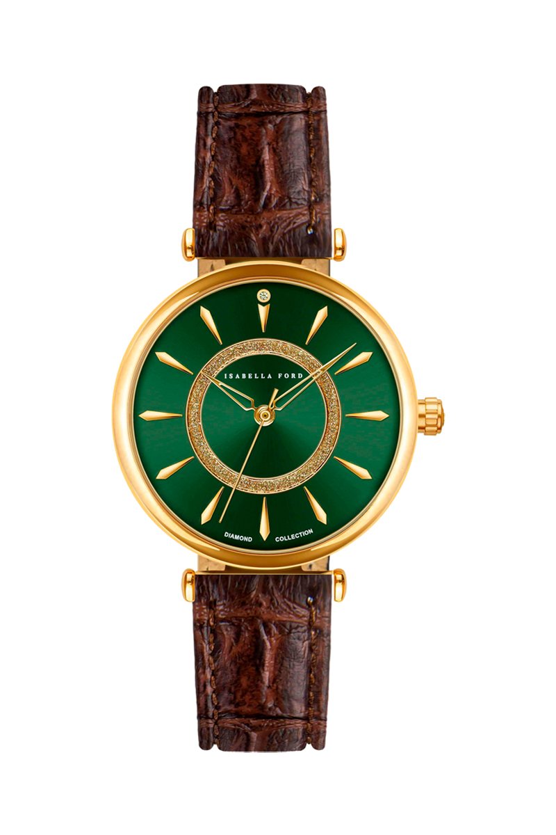 Glinsterende wijzerplaat ingelegd met 1 diamant.