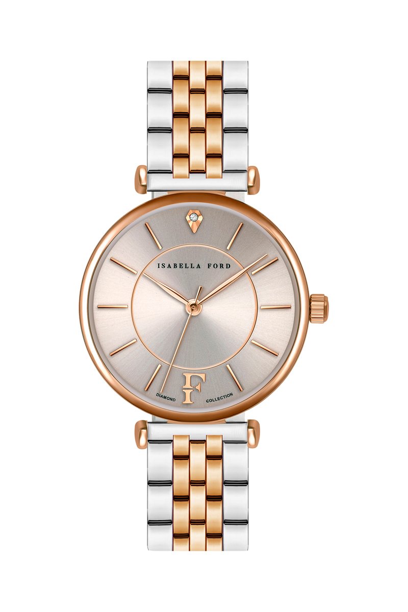Stalen Quartz Horloge met Diamant Sophia- Zilverkleurig en Roségoudkleurig