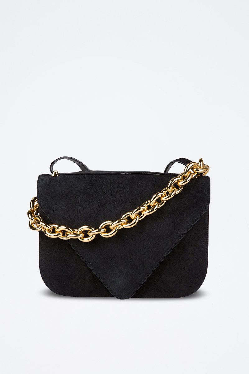 Nubuck Trendy Handtas Mount - Bottega Veneta - Zwart en goudkleurig