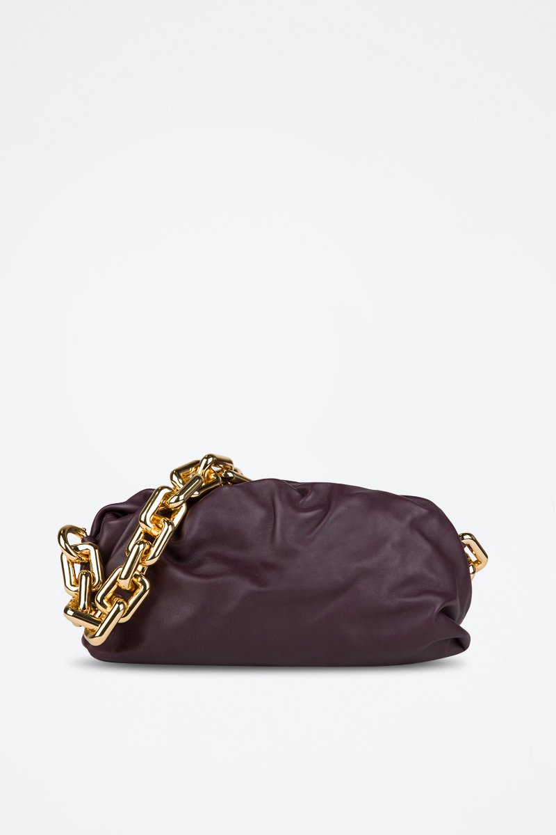 Kalfsleren Handtas - Donkeroord en Goudkleurig - Rood