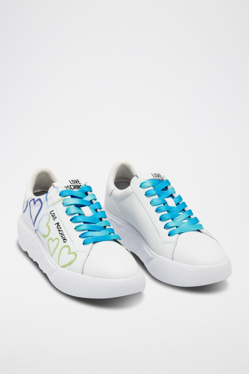 Leren Platform Sneakers - Wit - Wit en blauw