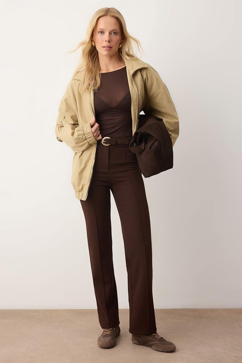 Broek Straight Hoge Taille - Donkerbruin