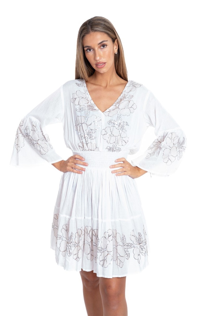 Bloemmotief met pailletten op de mouwen en aan de voorkant.