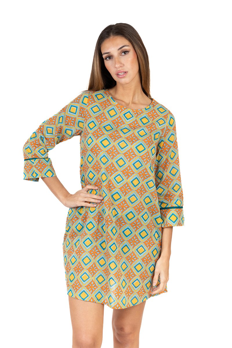 Jurk - Blauw en oranje