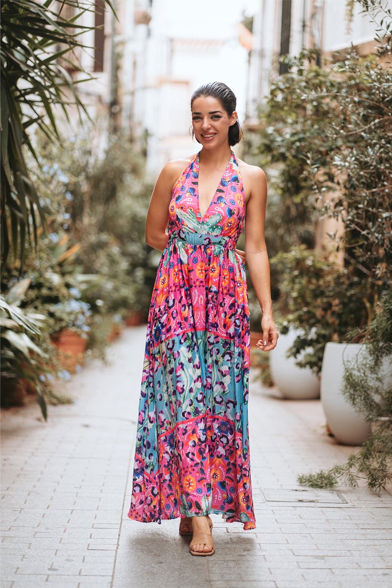 Lange Jurk - Blauw en roze