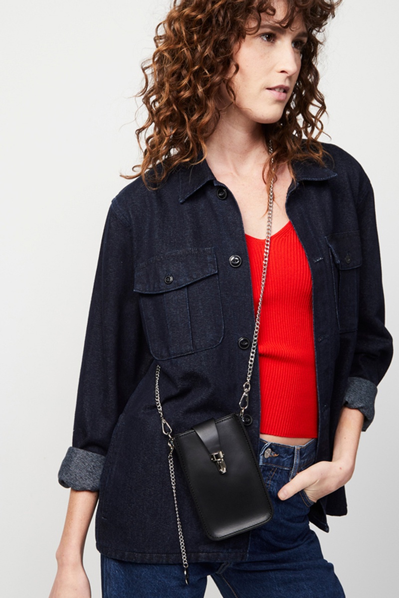 Elegante clutch van leer. Schouderketting. Gebruiksvriendelijk.