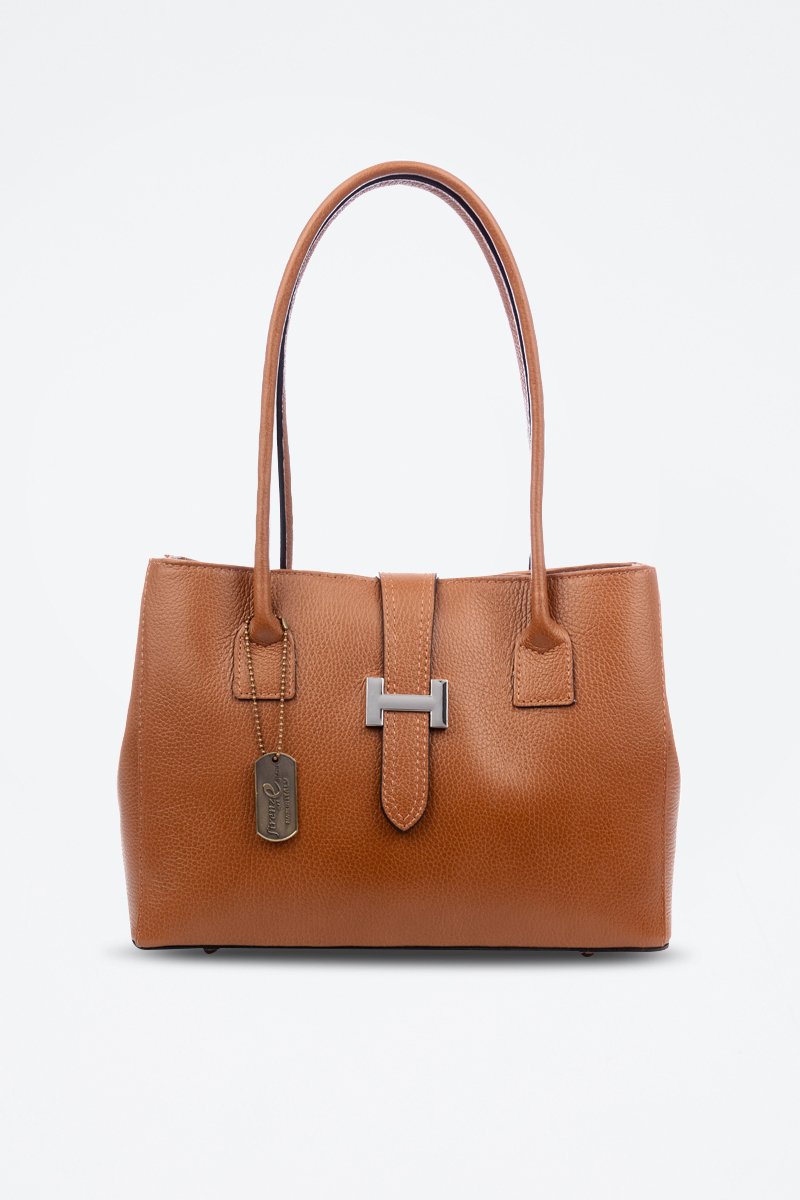 Handtas van gekorreld leer.