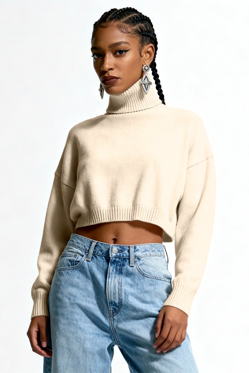 Korte Scheerwollen en Alpacawollen Trui- Ecru
