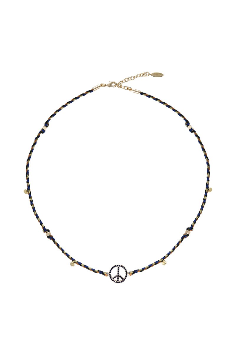 Materiaal: verguld messing 16 karaat, emaille, kristallen en katoen