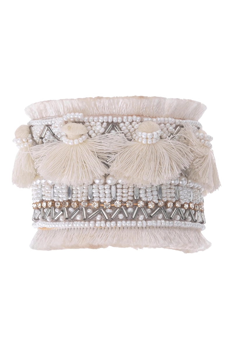 Open manchetarmband ingelegd met kunstparels en kristallen.