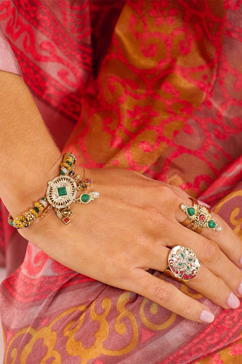 Materiaal: messing, malachieten, kristallen en kunstparel
