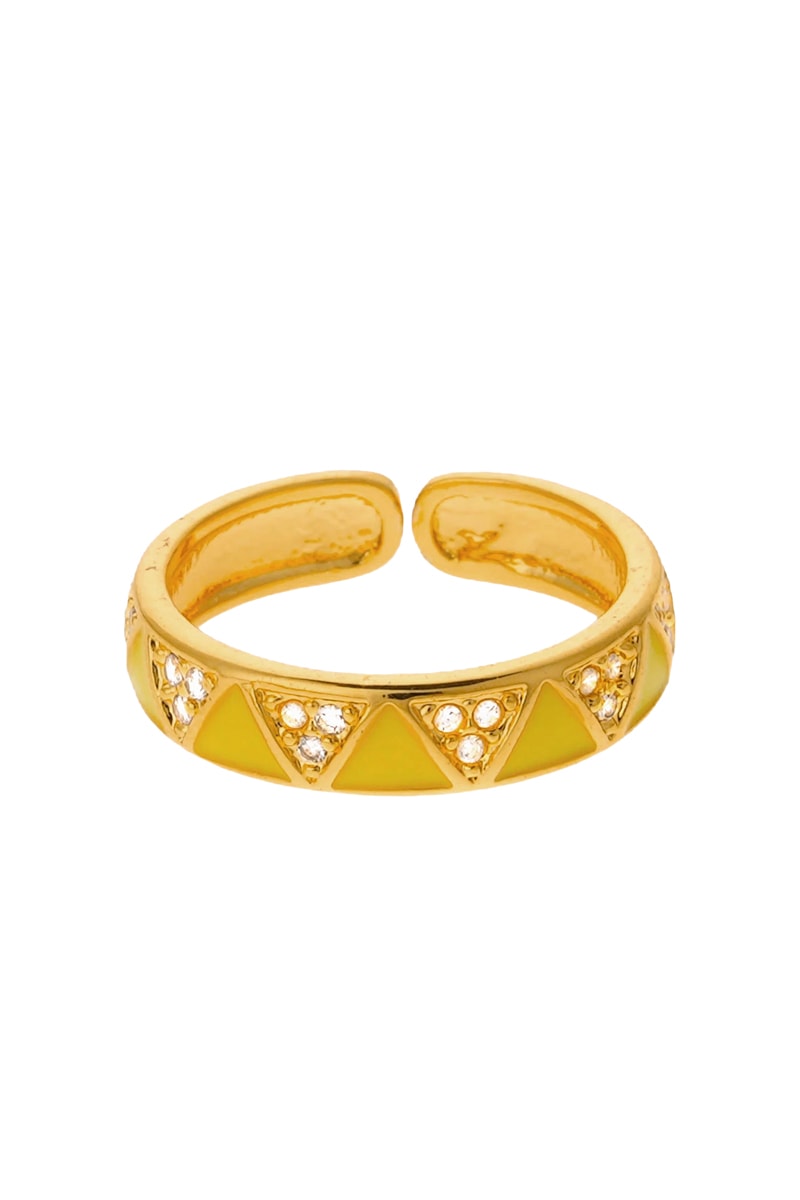 Verstelbare ring verguld met geelgoud ingelegd met zirkonia’s en email.