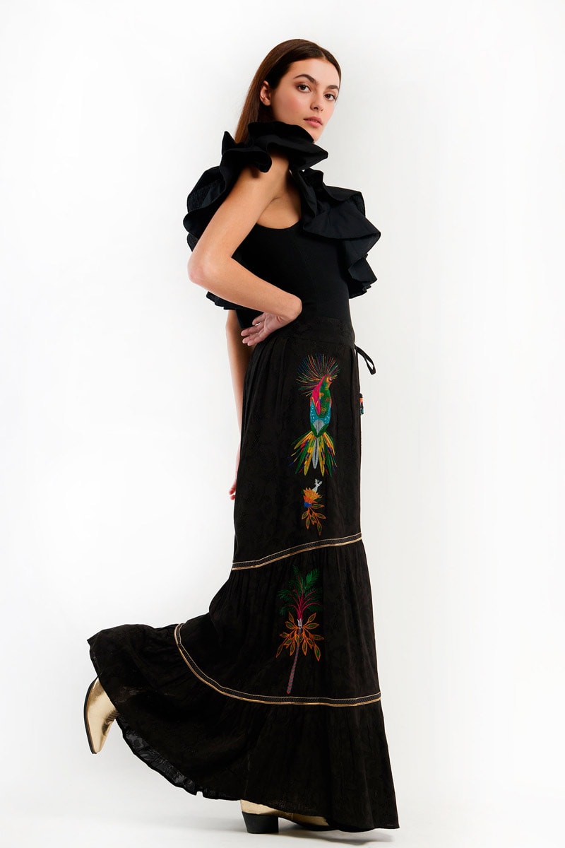 Lange Rok Hoge Taille Oxane - Zwart