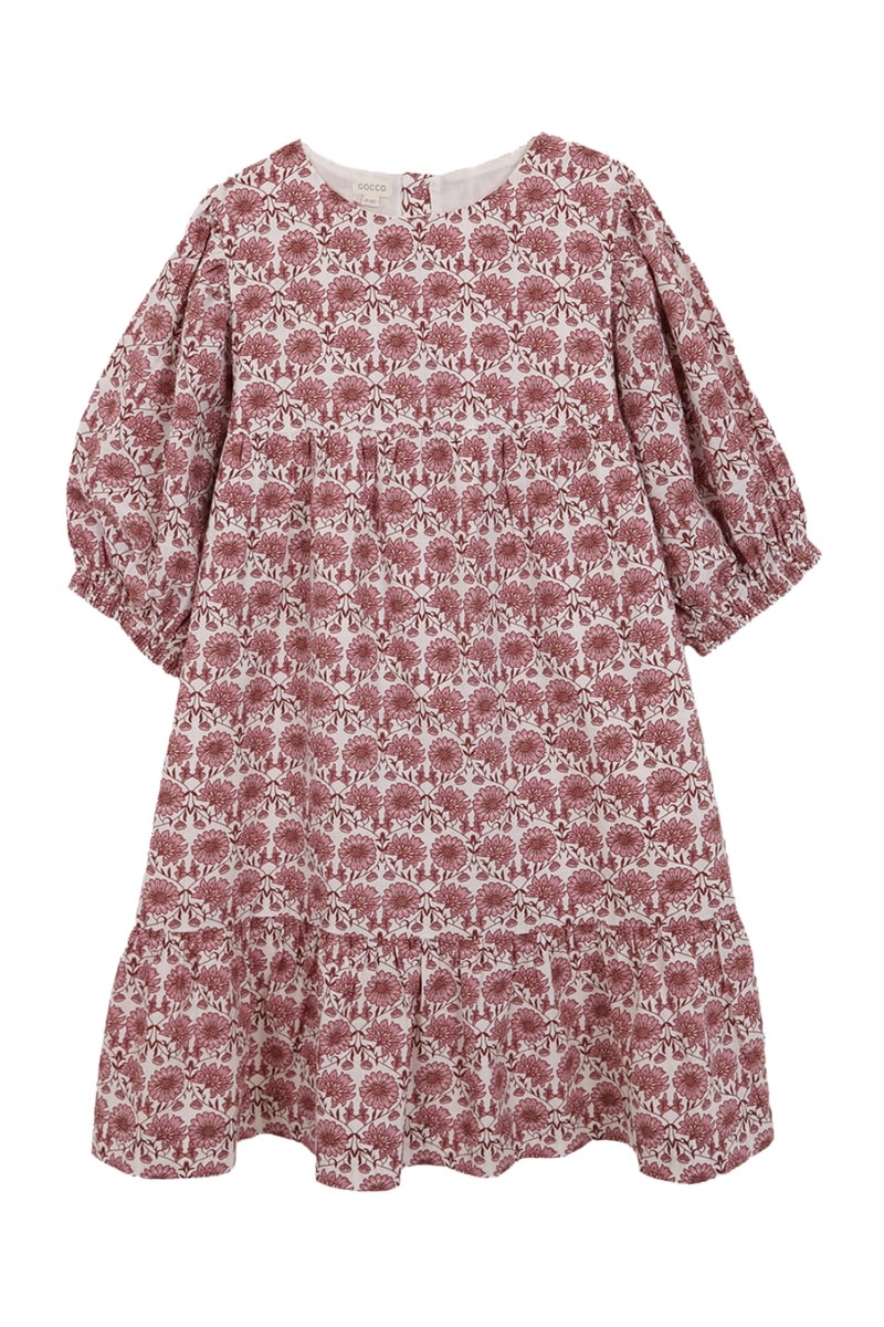Jurk met lange elastische pofmouwen.